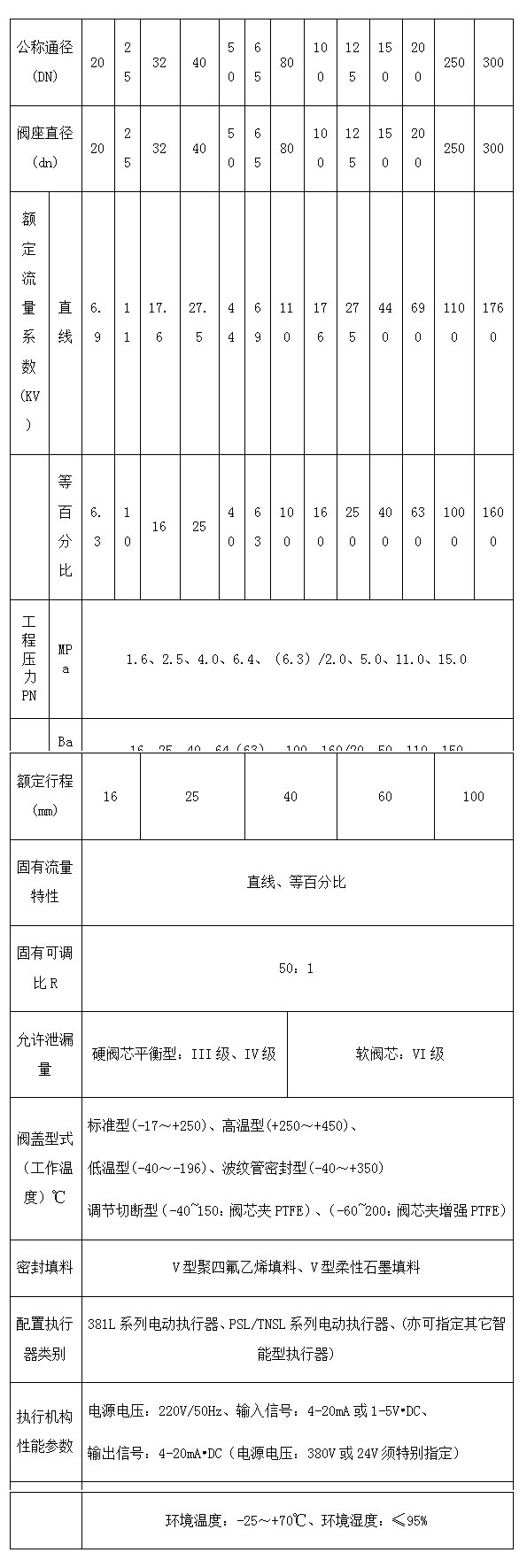 ◆電動(dòng)套筒調(diào)節(jié)閥 技術(shù)參數(shù):