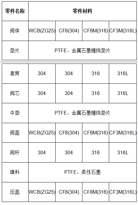 ·閥體、閥內(nèi)件及填料材質(zhì)