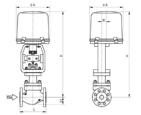 M型調(diào)節(jié)閥由閥體、閥座、套筒、閥芯、導(dǎo)向套、閥蓋及密封填料與電動(dòng)執(zhí)行器匹配后組成。電動(dòng)套筒調(diào)節(jié)閥通過(guò)接收工業(yè)自動(dòng)化控制系統(tǒng)的信號(hào)(如:4~20mA或1~5V)來(lái)驅(qū)動(dòng)閥門改變閥芯和閥座之間的截面積大小控制管道介質(zhì)的流量、溫度、壓力等工藝參數(shù),實(shí)現(xiàn)自動(dòng)化調(diào)節(jié)功能。特別適用于流量大,壓差大,泄漏量要求不高的場(chǎng)合。