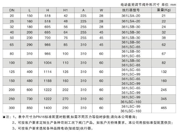 ◆電動(dòng)套筒調(diào)節(jié)閥 外形尺寸及重量: