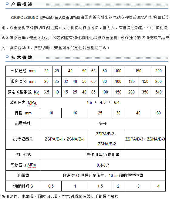 ZSQPC氣動快速切斷閥