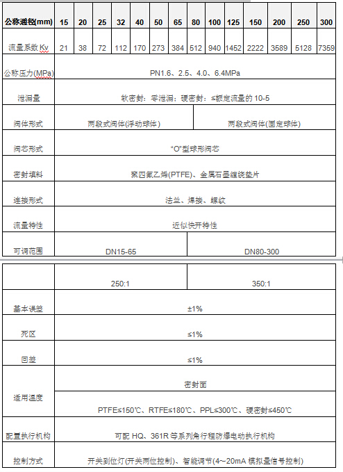 ◆電動(dòng)O型切斷球閥 主要技術(shù)參數(shù)與性能指標(biāo):
