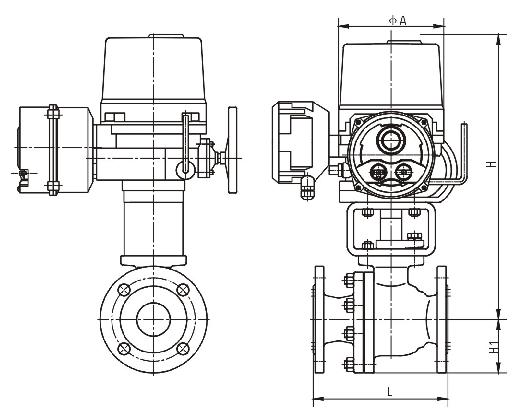 ◆電動(dòng)O型切斷球閥 外形尺寸: