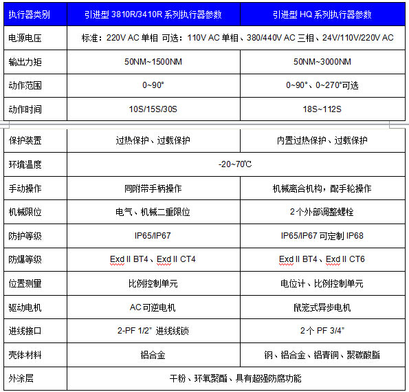 執(zhí)行器技術(shù)參數(shù)及性能: