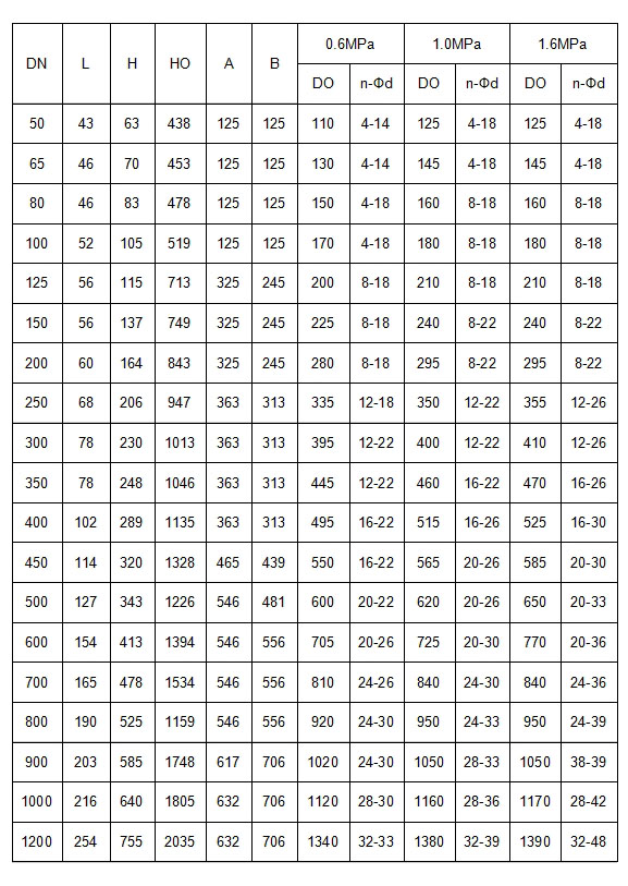 對夾式電動軟密封調(diào)節(jié)閥主要外形連接尺寸 :
